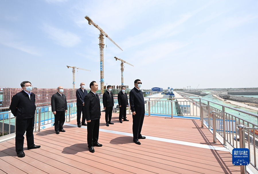 5月10日,中共中央總書記、國家主席、中央軍委主席習(xí)近平在河北省雄安新區(qū)考察,并主持召開標(biāo)準(zhǔn)質(zhì)量推進(jìn)雄安新區(qū)建設(shè)座談會。這是10日上午,習(xí)近平在雄安城際站及國貿(mào)中心項目建設(shè)現(xiàn)場考察。新華社記者 燕雁 攝